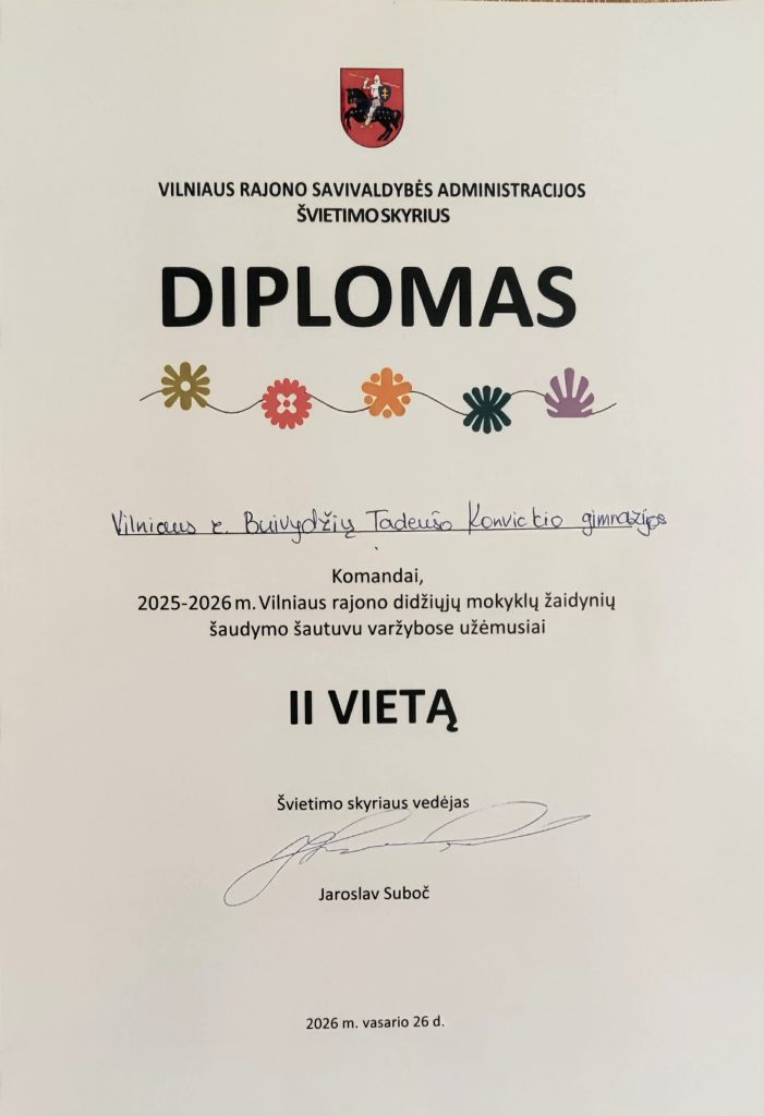 Mūsų gimnazijos atstovai pademonstravo puikų pasirengimą, taiklumą, susikaupimą bei stiprią komandinę dvasią. Atsakingas darbas ir pastangos atsipirko – iškovota garbinga II vieta. Didžiuojamės komandos pasiekimu ir nuoširdžiai sveikiname su puikiu rezultatu! Linkime ir toliau ryžtingai siekti pergalių.