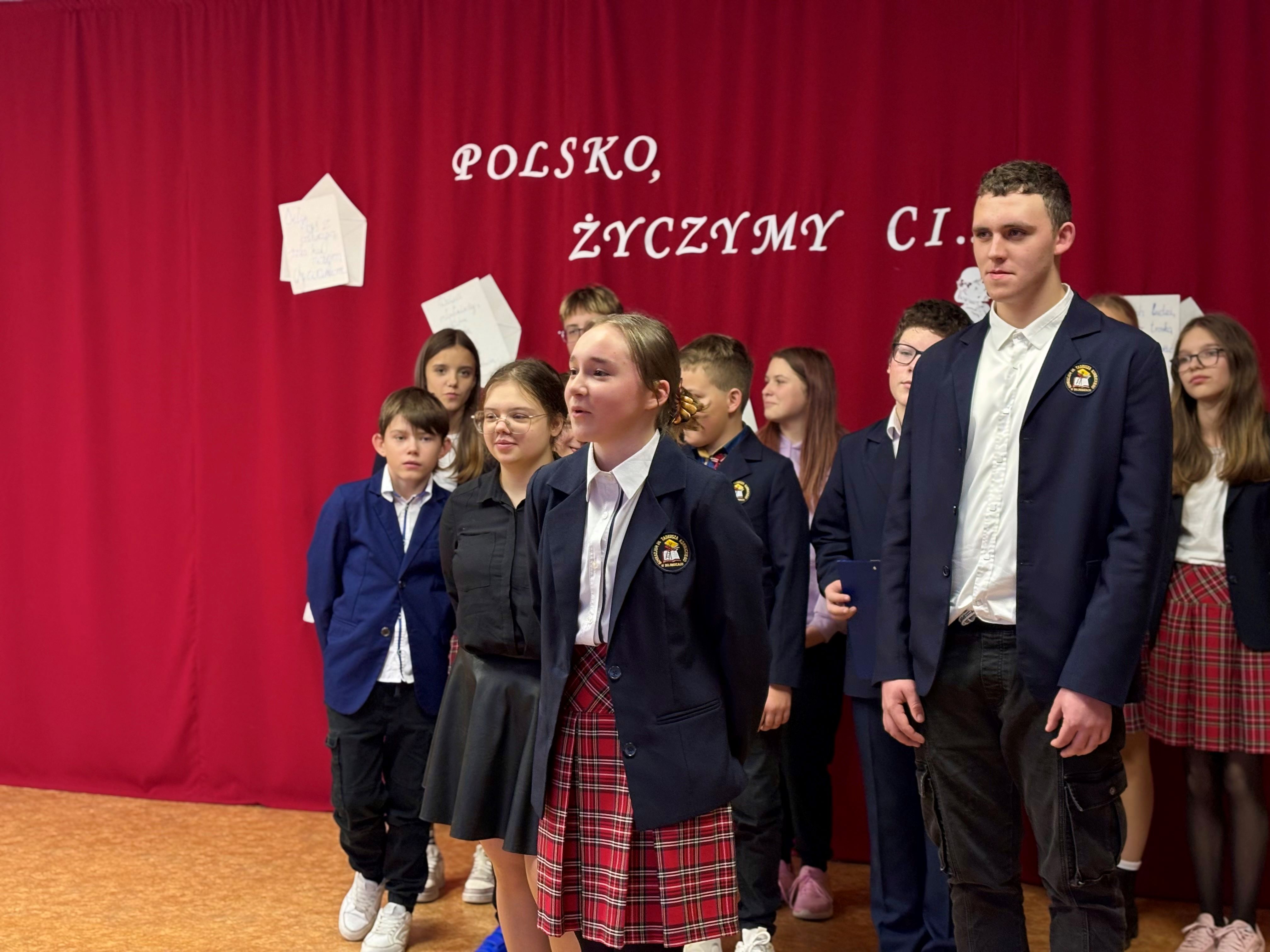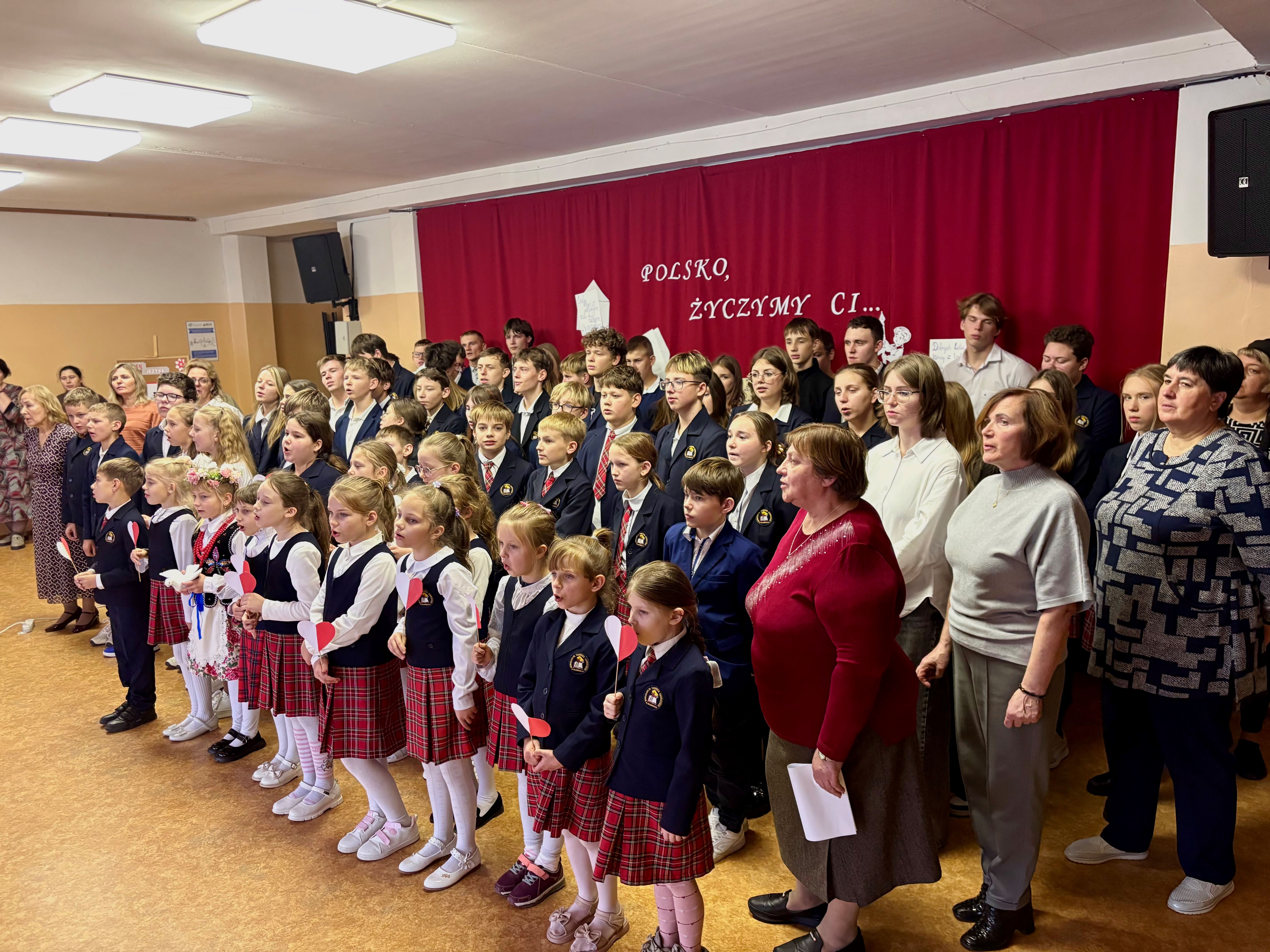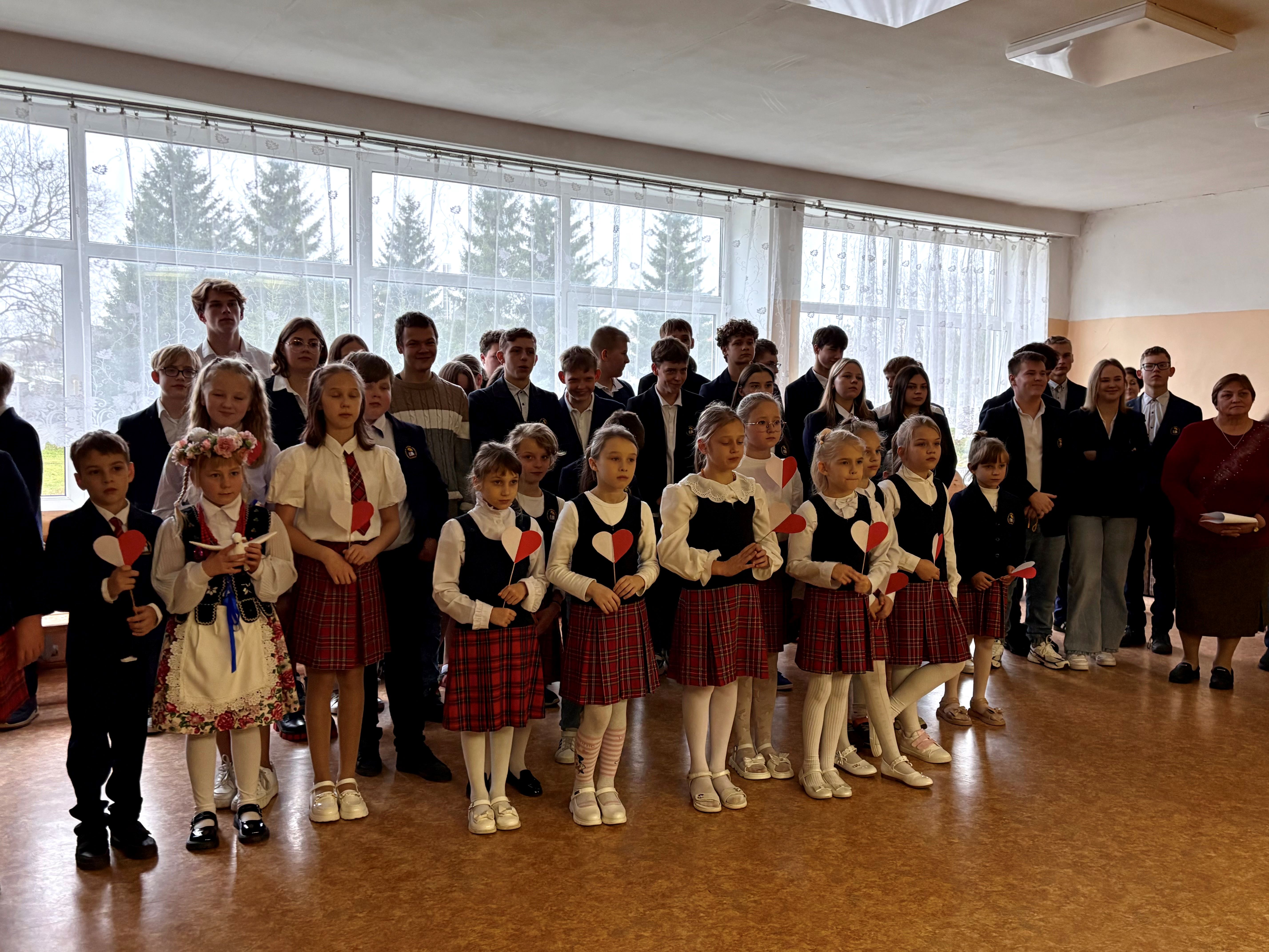 Lapkričio 11 d., mūsų gimnazijoje tvyrojo išskirtinė, iškili atmosfera. Nepriklausomybės dienos šventę pradėjome bendru giesmės ,,Tautiška giesmė“ giedojimu – šis momentas sukėlė šiurpuliuką ir šypsenas visų dalyvių veiduose. Mažiausieji mokiniai žavėjo publiką trumpais eilėraščiais ir dainomis apie Lenkiją. Jų įsitraukimas ir džiaugsmas užkrėtė visus. Vyresnieji mokiniai paruošė jausmingą meninę programą – recitavo patriotinius eilėraščius, skaitė laišką Lenkijai ir išreiškė nuoširdžius linkėjimus. Įsimintiniausia šventės akimirka buvo bendras dainos „Wileńszczyzny drogi kraj“ atlikimas, kuris padrasino visus susirinkusiuosius. Vėliau mokinių delegacija nuėjo į kapines, uždegti žvakių ant karių kapų – kaip pagarba tiems, kurie kovojo už laisvą Lenkiją. Tai buvo diena kupina jausmų, apmąstymų ir didybės – diena, kuri priminė mums, kaip svarbi yra laisvė ir atsiminti tuos, kurie už ją kovojo.